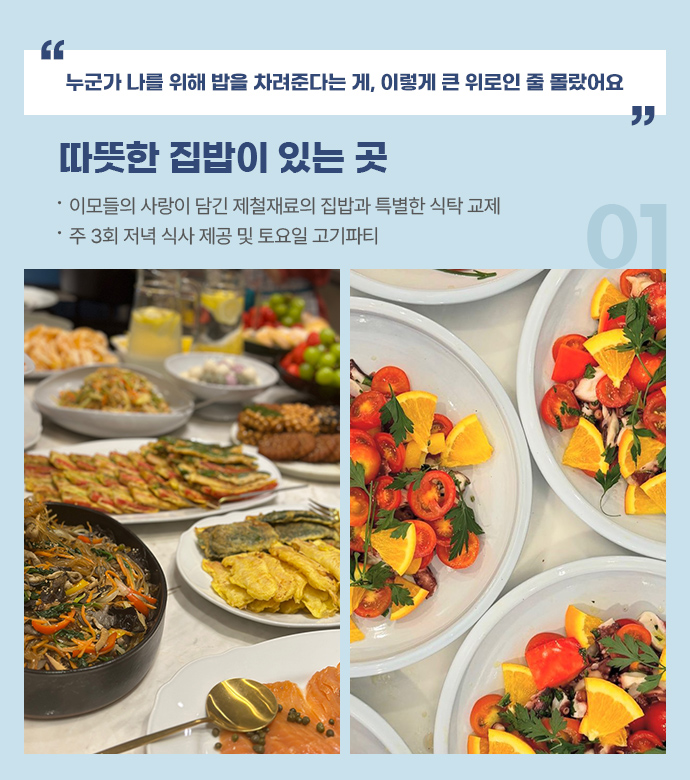 이모가 차려주는 따뜻한 집밥 한상차림 매일 달라지는 메뉴와 토요일은 고기파티